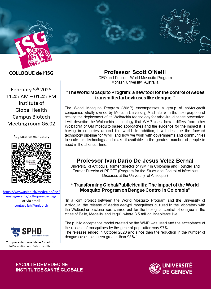 “The World Mosquito Program: a new tool for the control of Aedes transmitted arboviruses like dengue.” - “Transforming Global/Public Health: The Impact of the World Mosquito Program on Dengue Control in Colombia”