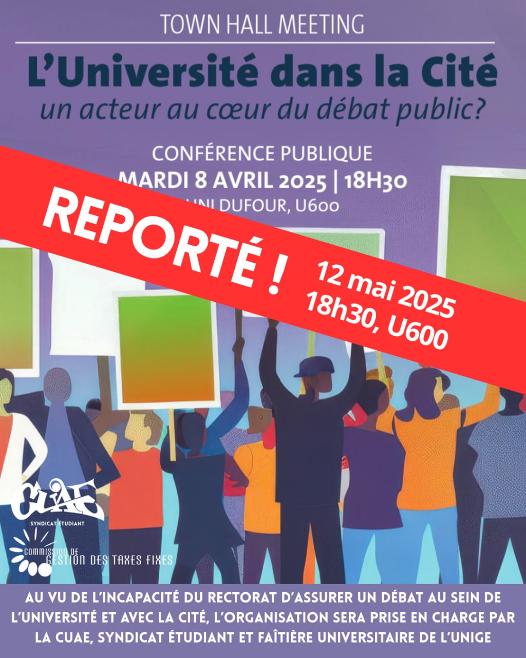 Dans ce contexte, il est normal de se poser la question de la place de l'Université dans le débat public. Or, les membres de la communauté universitaire répondent à cette question quotidiennement. Les associations organisent des évènements, les étudiant.es occupent UniMail pour avoir des repas à 3 CHF ou en solidarité avec le peuple palestinien et les collaborateur.ices font grève pour demander davantage de droits. La place de l'Université dans le débat public n'est pas une possibilité, elle est un fait.