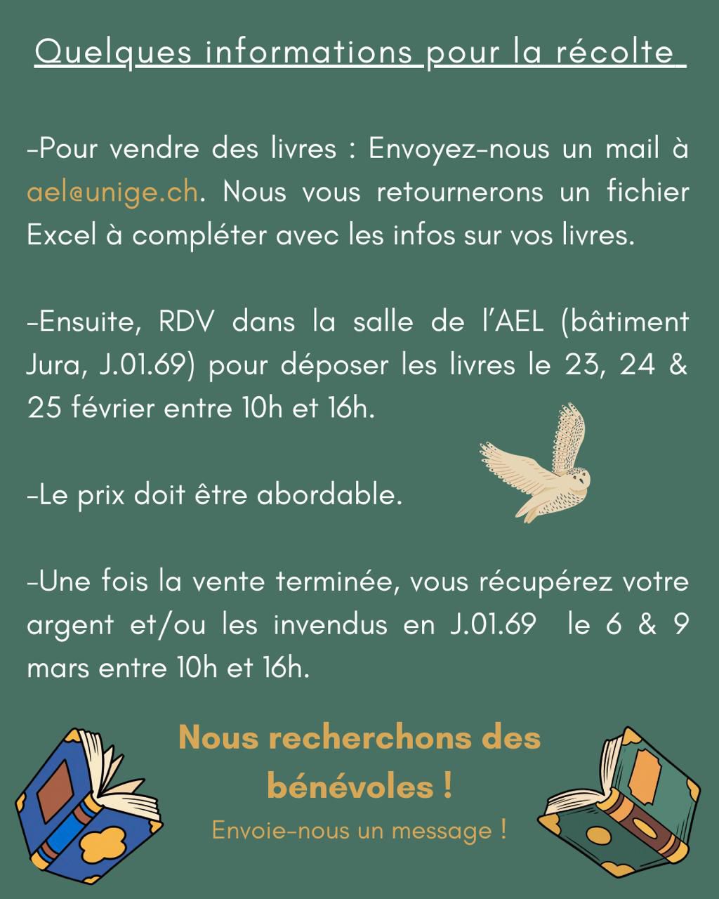 Rdv ensuite du 23 au 25.02 dans notre salle étudiante pour nous apporter tes livres.