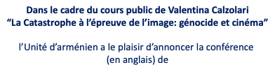 Conférence organisée dans le cadre du cours public de Valentina Calzolari “La Catastrophe à l’épreuve de l’image: génocide et cinéma”